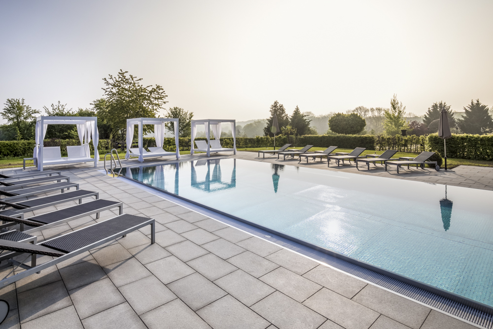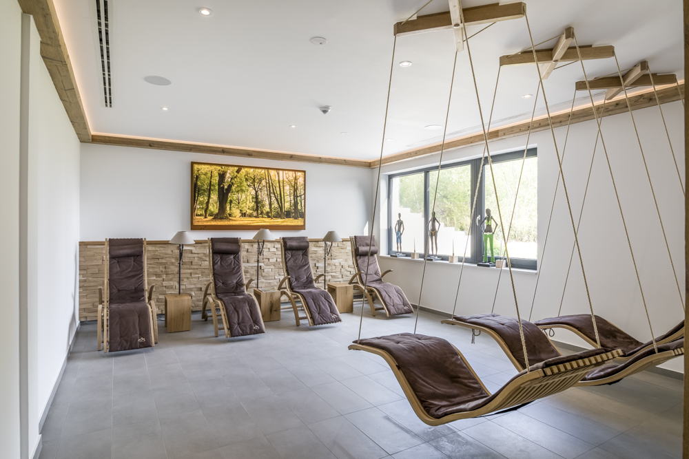 Darüber hinaus werden auch Ruhebereiche mit Hängesesseln sowie Sonnenterrassen zur Verfügung gestellt. Im Souterrain befindet sich ein großer Außenpool, der auch innerhalb des Gebäudes zugänglich ist.