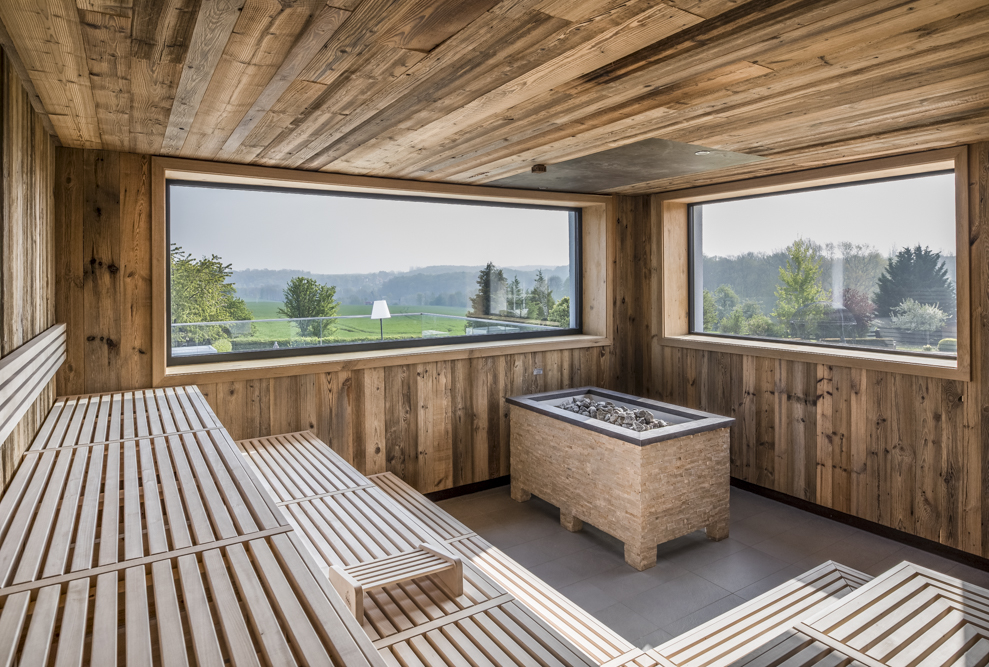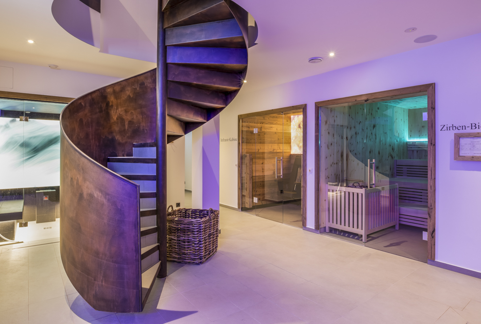 Im Erdgeschoss sowie im Untergeschoss werden den Gästen verschiedene Saunen und Erholungsbereiche zur Verfügung gestellt. Das Spektrum der angebotenen Saunen umfasst eine breite Palette an verschiedenen Saunen, darunter Panoramasaunen und Bio-Zirbesaunen.