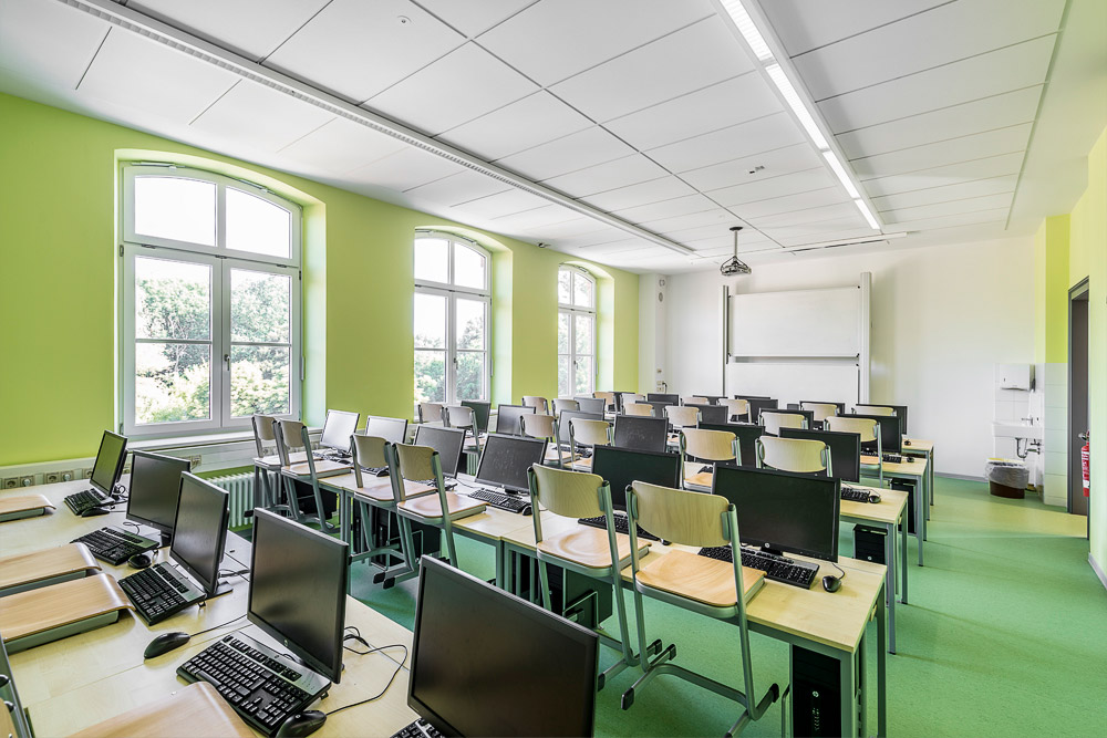Das Objekt wurde einer nachhaltigen Sanierung unterzogen und barrierefrei ausgelegt. Die Klassen- und Aufenthaltsräume sowie insbesondere die Chemie-, Physik- und Computerräume wurden auf den technisch aktuellen Stand gebracht.